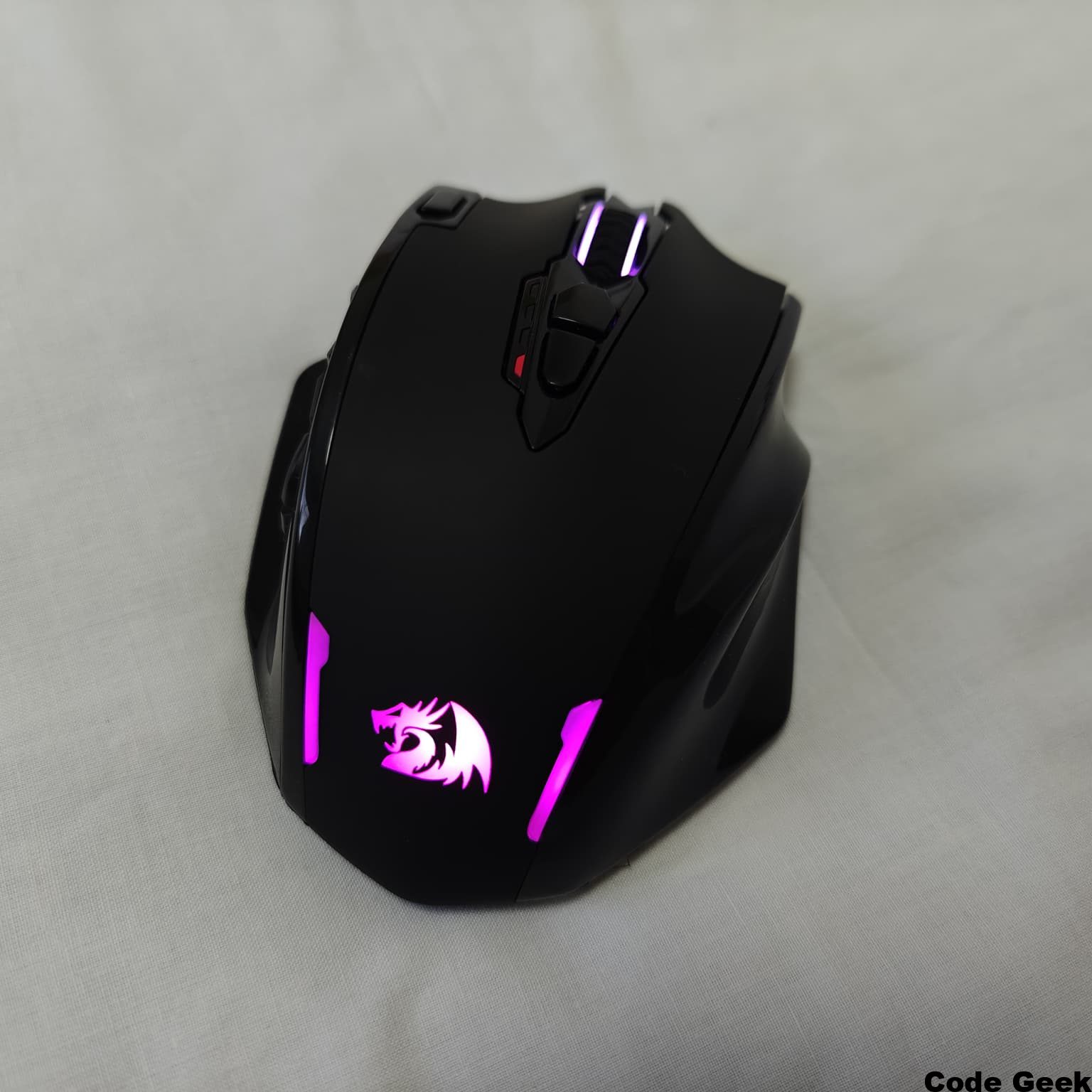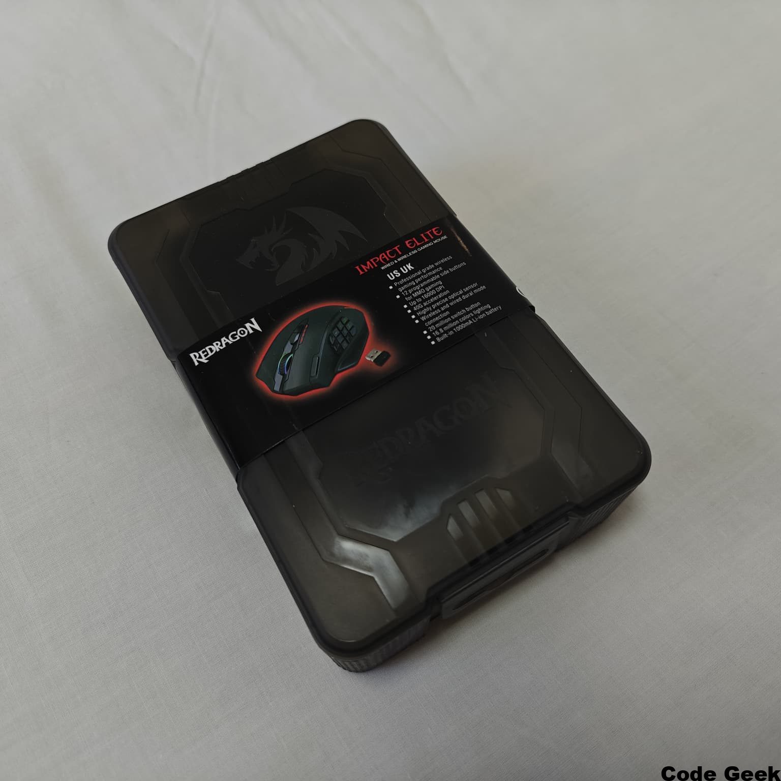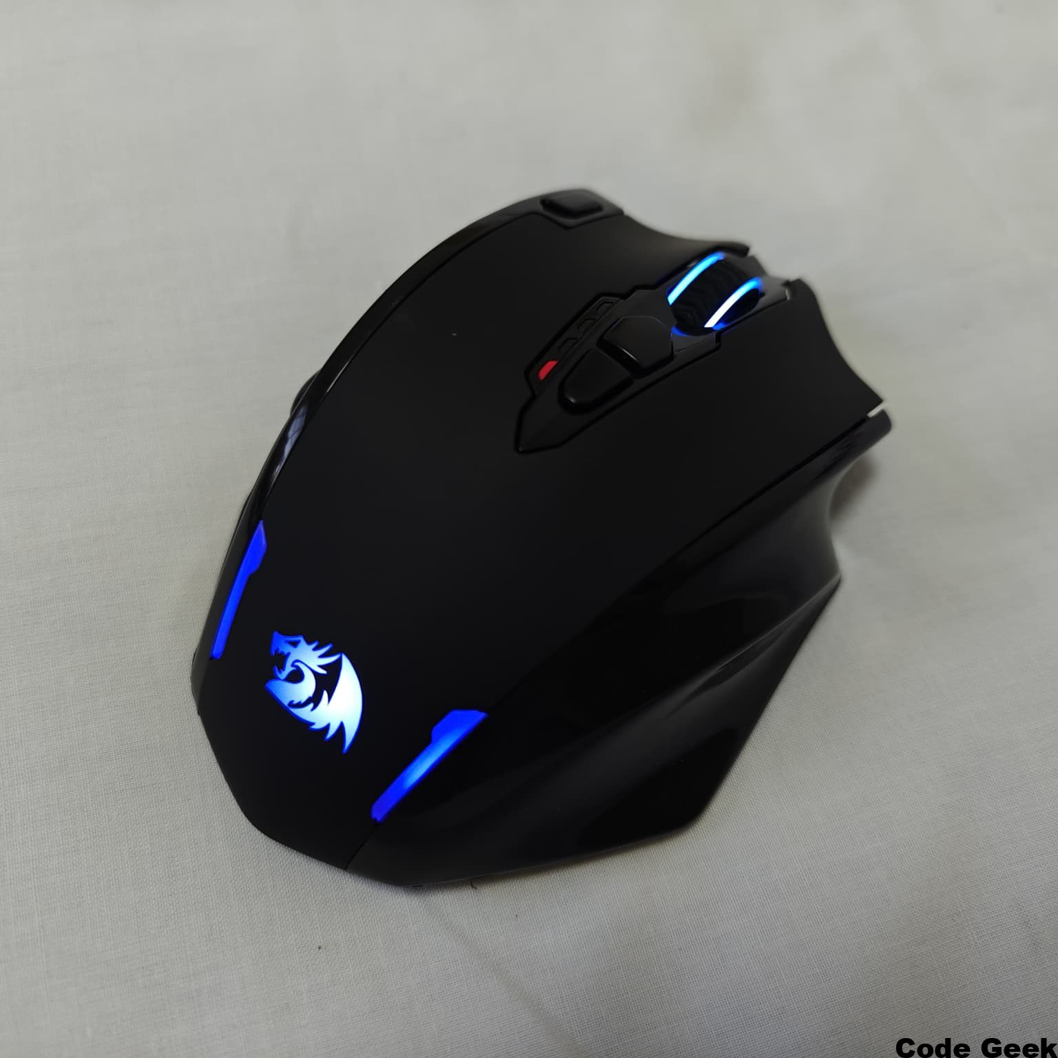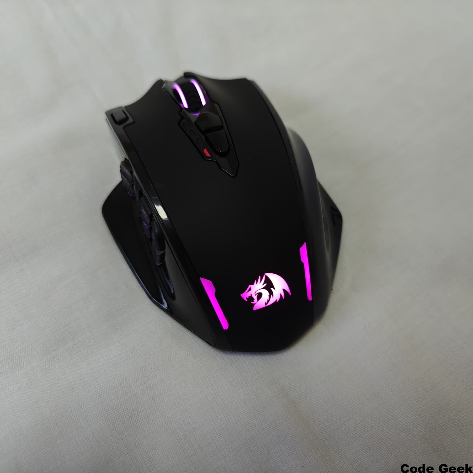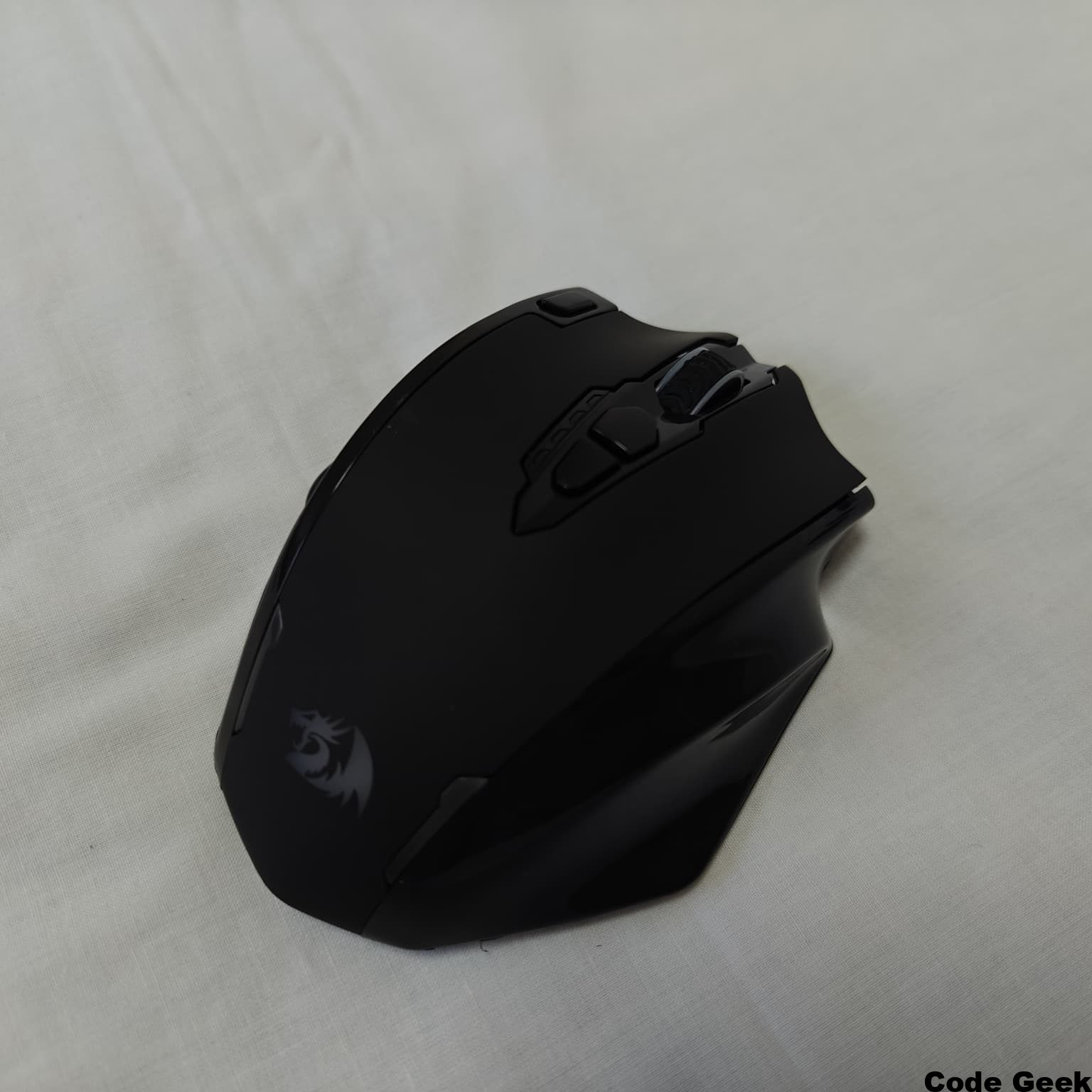 El Redragon M913 Impact Elite posee un diseño distintivo, con una parte superior plana y ancha que lo diferencia de otros ratones del mercado. Está orientado claramente a usuarios diestros y sus dimensiones (122 mm de largo, 92 mm de ancho y 42 mm de alto) lo sitúan en una categoría que busca llenar la palma de la mano, favoreciendo principalmente un agarre de tipo palma. Sin embargo, durante las pruebas se ha comprobado que también resulta cómodo para usuarios con agarre de garra, gracias a su forma bien estudiada. Con un peso de aproximadamente 129 gramos, se puede considerar un ratón con una presencia sólida en la mano, lo que contribuye a una sensación de estabilidad y calidad, aunque podría resultar pesado para jugadores acostumbrados a modelos ultraligeros para FPS.