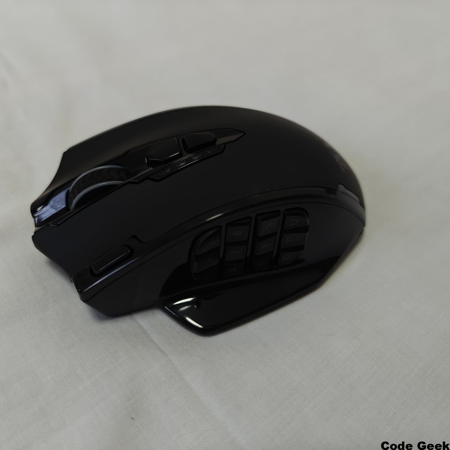 Un punto destacable es la disposición de sus 12 botones laterales, organizados en una cuadrícula de tres filas y cuatro columnas. Estos botones están angulados formando una ligera forma de «V» que ayuda a distinguirlos por tacto, facilitando la localización precisa durante partidas intensas donde no hay tiempo para mirar el ratón. No obstante, es importante señalar que los laterales del ratón están fabricados en plástico ABS brillante, que según análisis detallados, ofrece un agarre por debajo del promedio y puede ser propenso a marcas de dedos. Esto contrasta con la cubierta superior, que tiene un acabado mate.