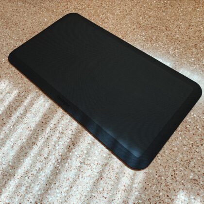 La calidad de construcción es excepcional. Utiliza una espuma de gel cauchutada patentada con un grosor de 17 mm que, según el fabricante, ofrece un rendimiento superior al de productos competidores más gruesos de poliuretano . Este material proporciona una fuerza tensil sin igual que resiste al desgaste en zonas de mucho tráfico, garantizando que la esterilla no se romperá ni deformará con el paso del tiempo . La superficie es resistente al agua y a los aceites, lo que facilita su limpieza, y cuenta con un certificado NFSI en su superficie antideslizante que reduce el peligro de caídas . Un detalle de diseño muy apreciado es su borde biselado, que cumple con la normativa ADA. Este borde evita que la esterilla se enrolle, resiste al paso y proporciona un ángulo suave que permite que las sillas de oficina pasen por encima con facilidad . Finalmente, se fabrica con materiales no tóxicos e ignífugos como el vinilo y sin BPA, cumpliendo con estrictas normativas medioambientales y de seguridad .