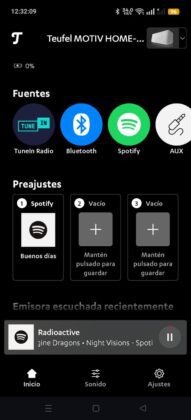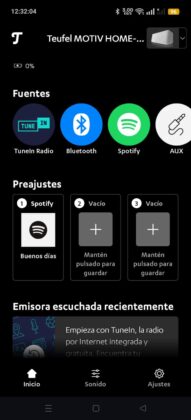 El Teufel MOTIV HOME se gestiona principalmente a través de la aplicación Teufel Home, disponible tanto para iOS como Android. Esta aplicación sirve como centro de control unificado para todas las funciones del altavoz, ofreciendo una interfaz intuitiva y accesible para todos los usuarios. El proceso de configuración inicial es notablemente sencillo, especialmente para usuarios de iOS, que pueden contar con una integración perfecta gracias al soporte de AirPlay 2.