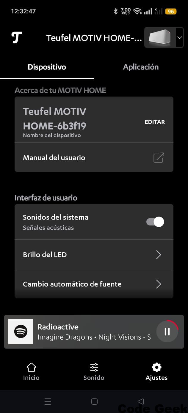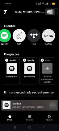 El Teufel MOTIV HOME se gestiona principalmente a través de la aplicación Teufel Home, disponible tanto para iOS como Android. Esta aplicación sirve como centro de control unificado para todas las funciones del altavoz, ofreciendo una interfaz intuitiva y accesible para todos los usuarios. El proceso de configuración inicial es notablemente sencillo, especialmente para usuarios de iOS, que pueden contar con una integración perfecta gracias al soporte de AirPlay 2.