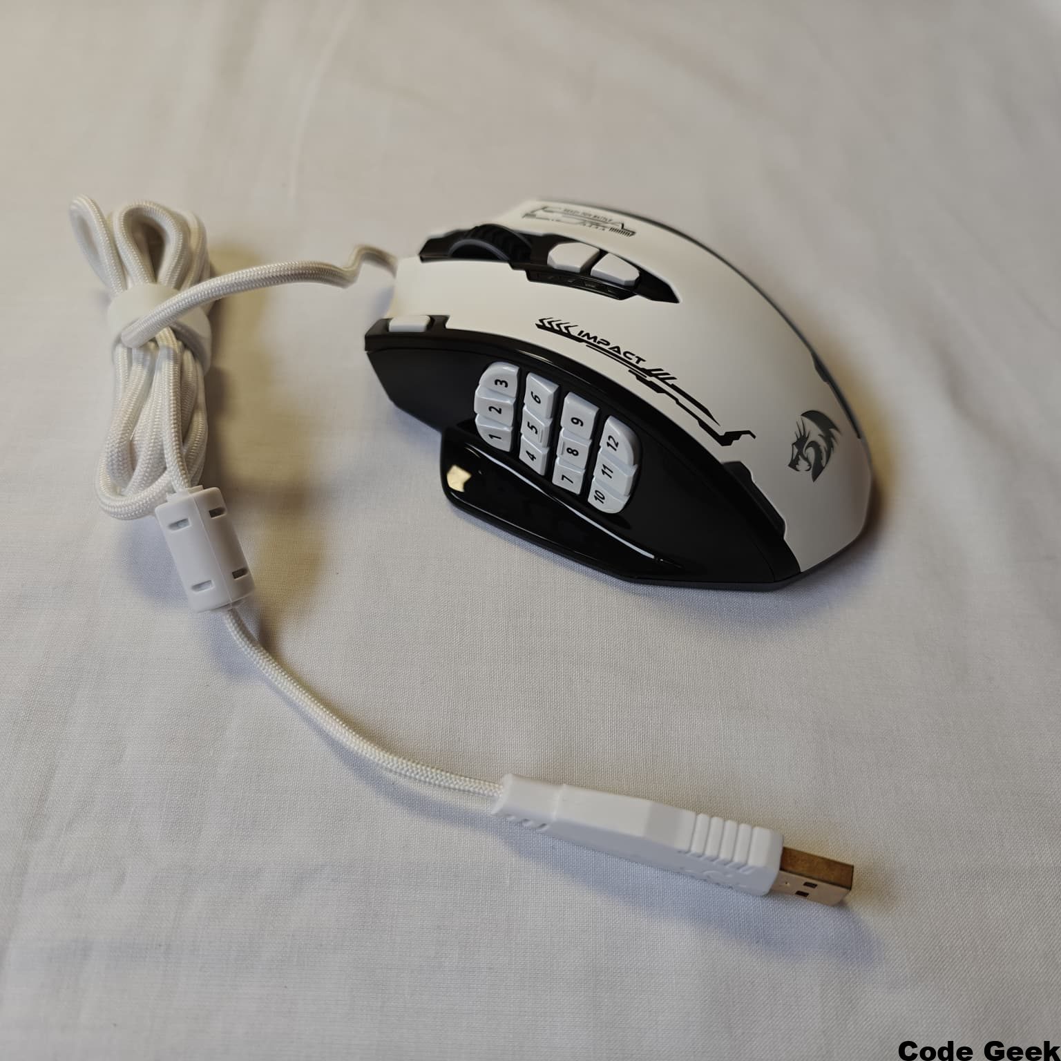 Una de las características más destacables de su diseño es el apoyo integrado para el dedo meñique y anular en el lateral derecho. Este elemento, a menudo pasado por alto en otros ratones, proporciona una sensación de estabilidad y comodidad excepcional, permitiendo que la mano descanse de forma natural y relajada sobre el periférico . En el lateral izquierdo, un reposapulgares amplio y ligeramente inclinado alberga la famosa matriz de 12 botones MMO. Este diseño no solo ofrece comodidad, sino que también dota al ratón de una estética simétrica y equilibrada que lo distingue visualmente de la competencia . El cable mallado de 1.8 metros de longitud no solo es extremadamente resistente, sino que también minimiza los enredos, facilitando la gestión del espacio en el escritorio .