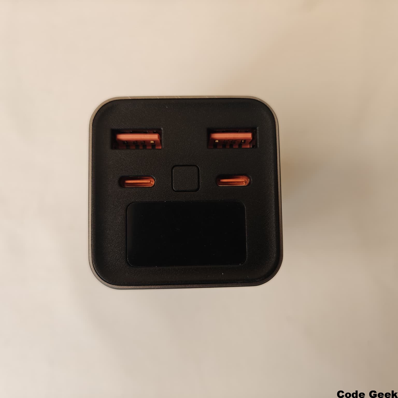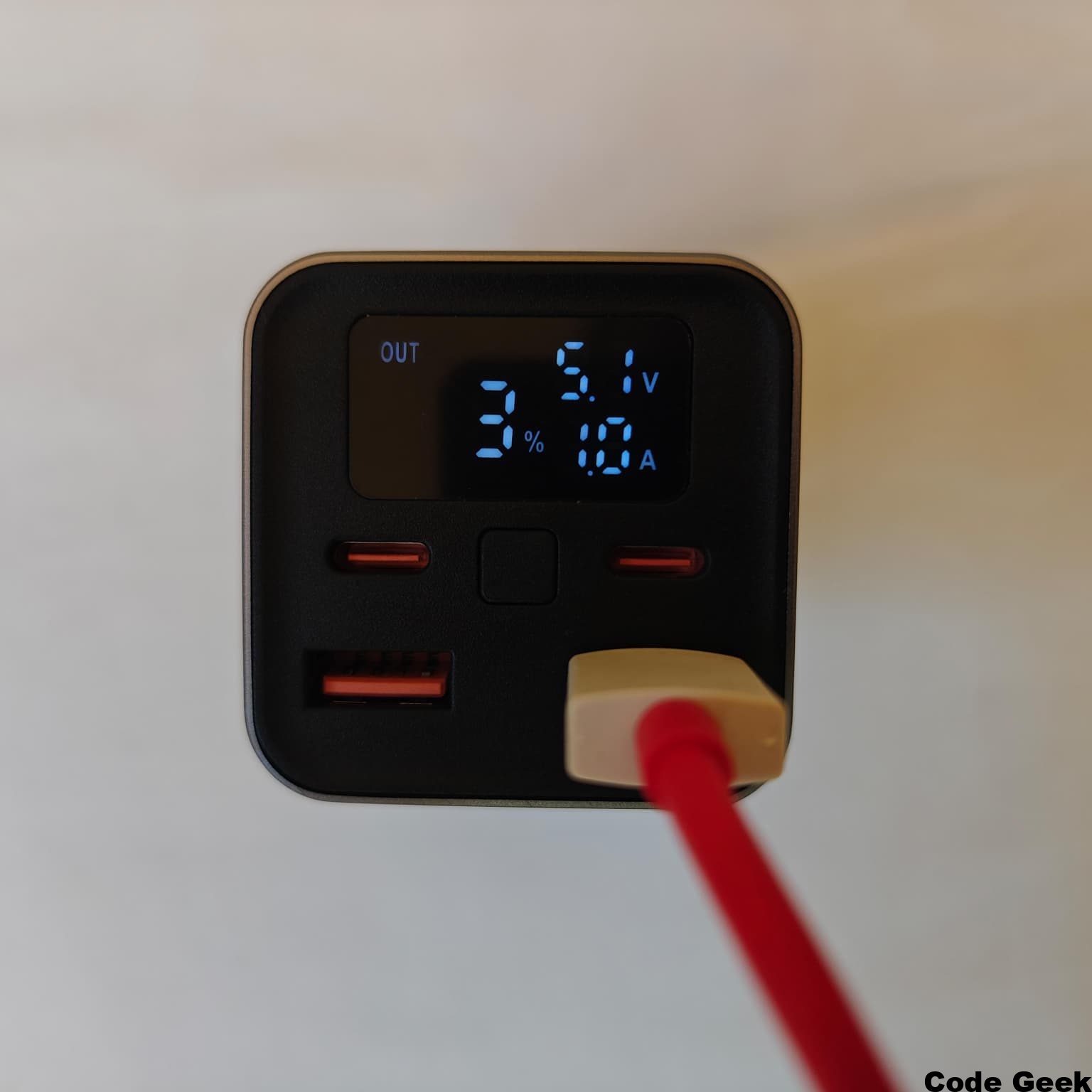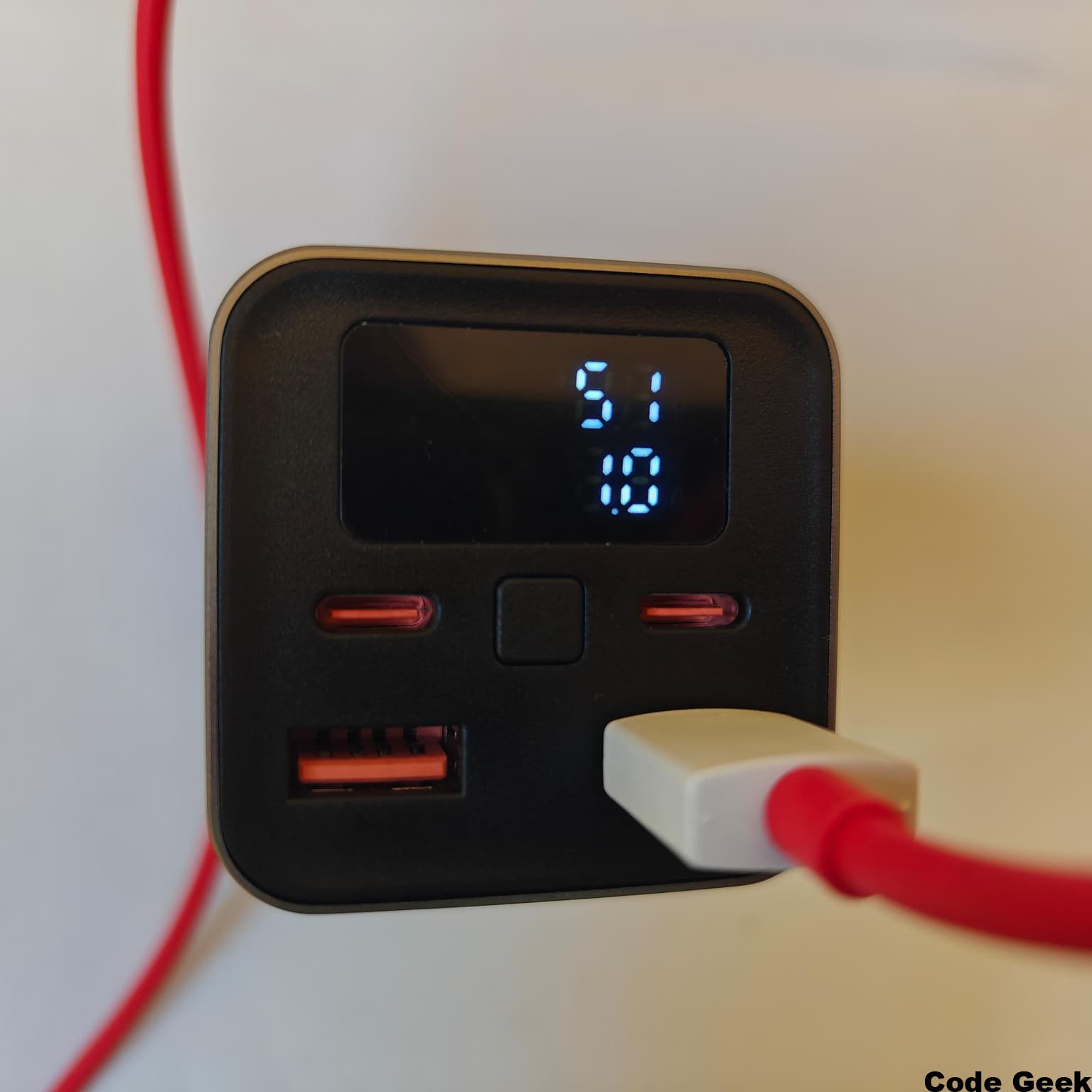 Los puertos USB-A, por su parte, no se quedan atrás en utilidad. Aunque el estándar USB-C es el futuro, todavía tenemos muchos cables y dispositivos que utilizan el conector clásico. Estos puertos ofrecen salidas de hasta 5V/3A, 9V/2A y 12V/1.88A, garantizando carga rápida también para dispositivos que utilicen protocolos como Quick Charge. La disposición de los puertos en la cara frontal del bloque facilita el acceso y permite mantener el dispositivo en un posavasos o en el bolsillo lateral de la mochila mientras los cables salen ordenadamente hacia nuestros dispositivos.