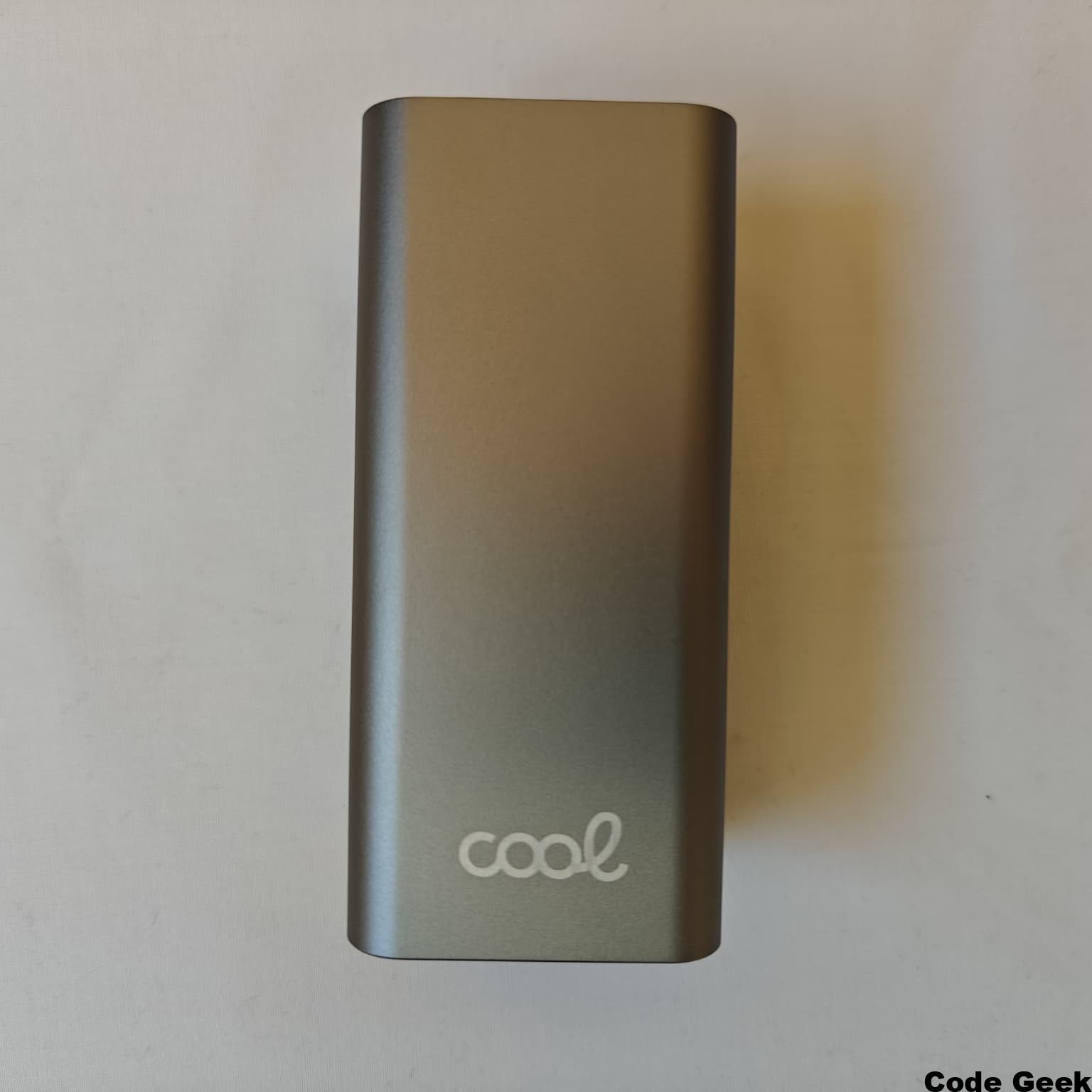Lo primero que llama la atención al sacar este dispositivo de su embalaje es su factor de forma. A diferencia de las baterías externas tradicionales que suelen apostar por diseños planos y alargados similares a un smartphone, COOL ha optado por un diseño prismático más compacto en longitud pero con mayor grosor. Con unas medidas de 105 x 46 x 47 mm, el dispositivo se siente denso y contundente en la mano. Esta elección de diseño no es casual, ya que permite alojar las celdas de batería de alta capacidad optimizando el espacio interno y facilitando su transporte en bolsillos profundos de mochilas o compartimentos específicos de maletines para portátiles sin ocupar una gran superficie plana.