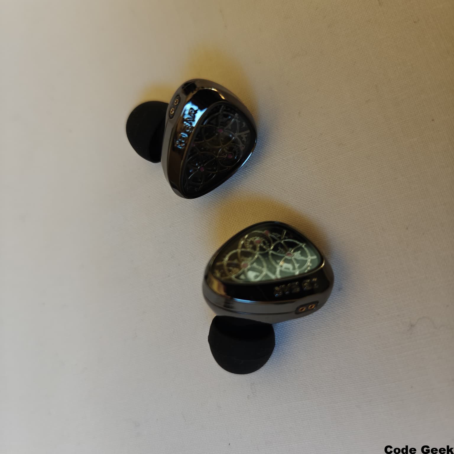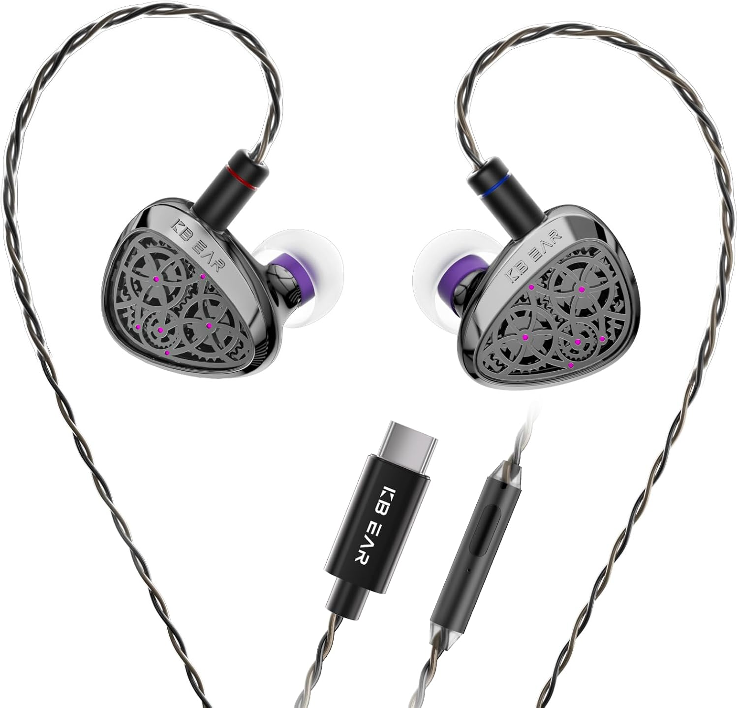 Al sostener los KBEAR TB-Pro por primera vez, lo primero que captura la atención es su propuesta visual única. A diferencia de la mayoría de los monitores in-ear (IEMs) que optan por resinas de colores abstractos o metales cepillados minimalistas, este modelo rinde homenaje a la complejidad mecánica. Bajo una capa protectora transparente se revela un diseño que imita los engranajes de un reloj tourbillon, evocando una sensación de precisión y movimiento perpetuo. Esta elección no es meramente decorativa; busca transmitir la filosofía de que el sonido es, en esencia, una maquinaria precisa donde cada componente debe trabajar en perfecta sincronía.