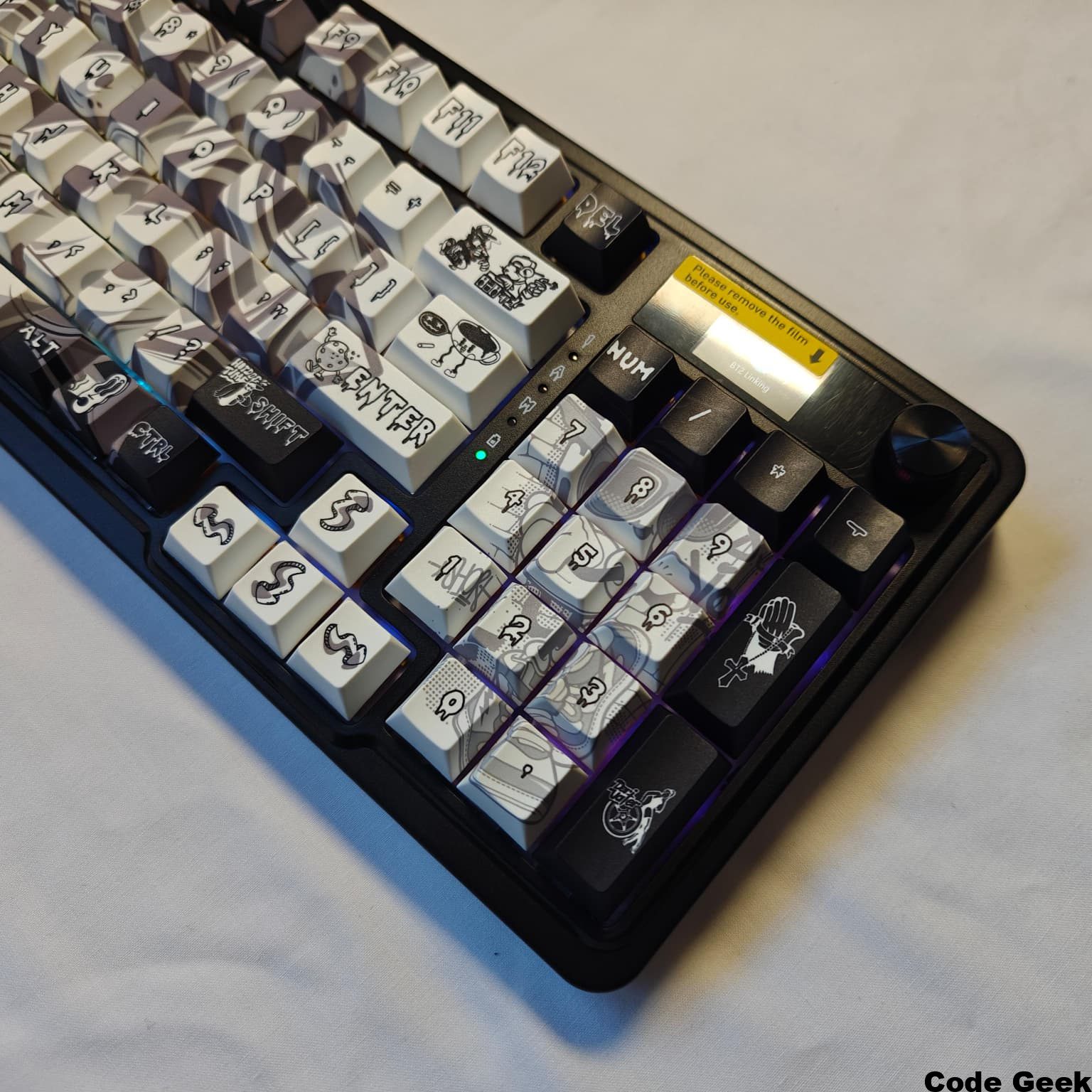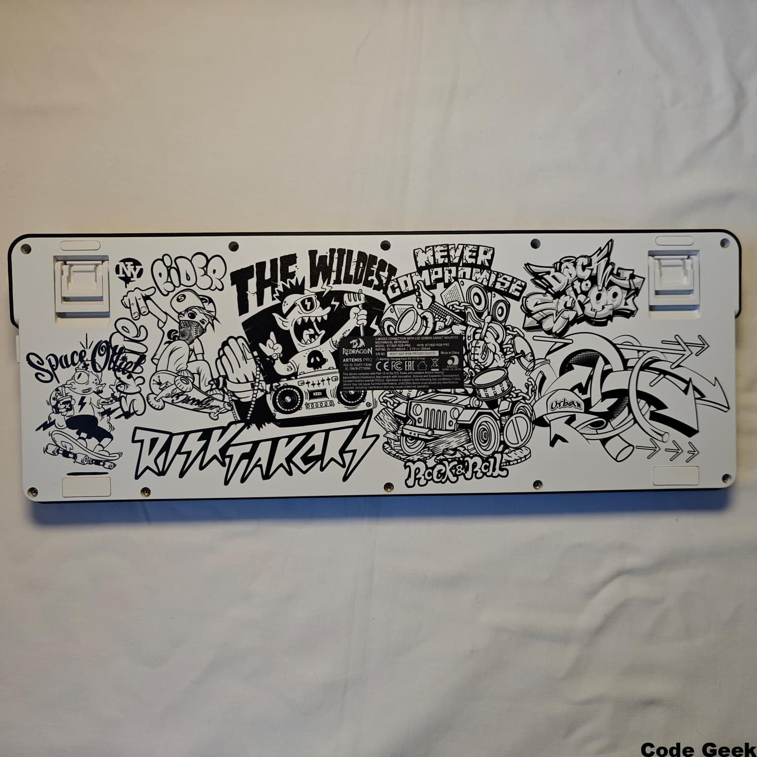 El primer impacto con el Redragon ARTEMIS K719 PRO es visual. La técnica de impresión Dual UV de precisión aplicada sobre el chasis no es un simple estampado, sino un tratamiento que garantiza una durabilidad excepcional. Los vibrantes grafitis y diseños urbanos que decoran la carcasa prometen resistir el desgaste diario, el roce de las manos y el paso del tiempo, manteniendo sus colores vivos y sus trazos definidos. Este enfoque convierte al teclado en una pieza central para cualquier setup, rompiendo con la monotonía de los colores sólidos y ofreciendo una personalidad única desde el primer momento.