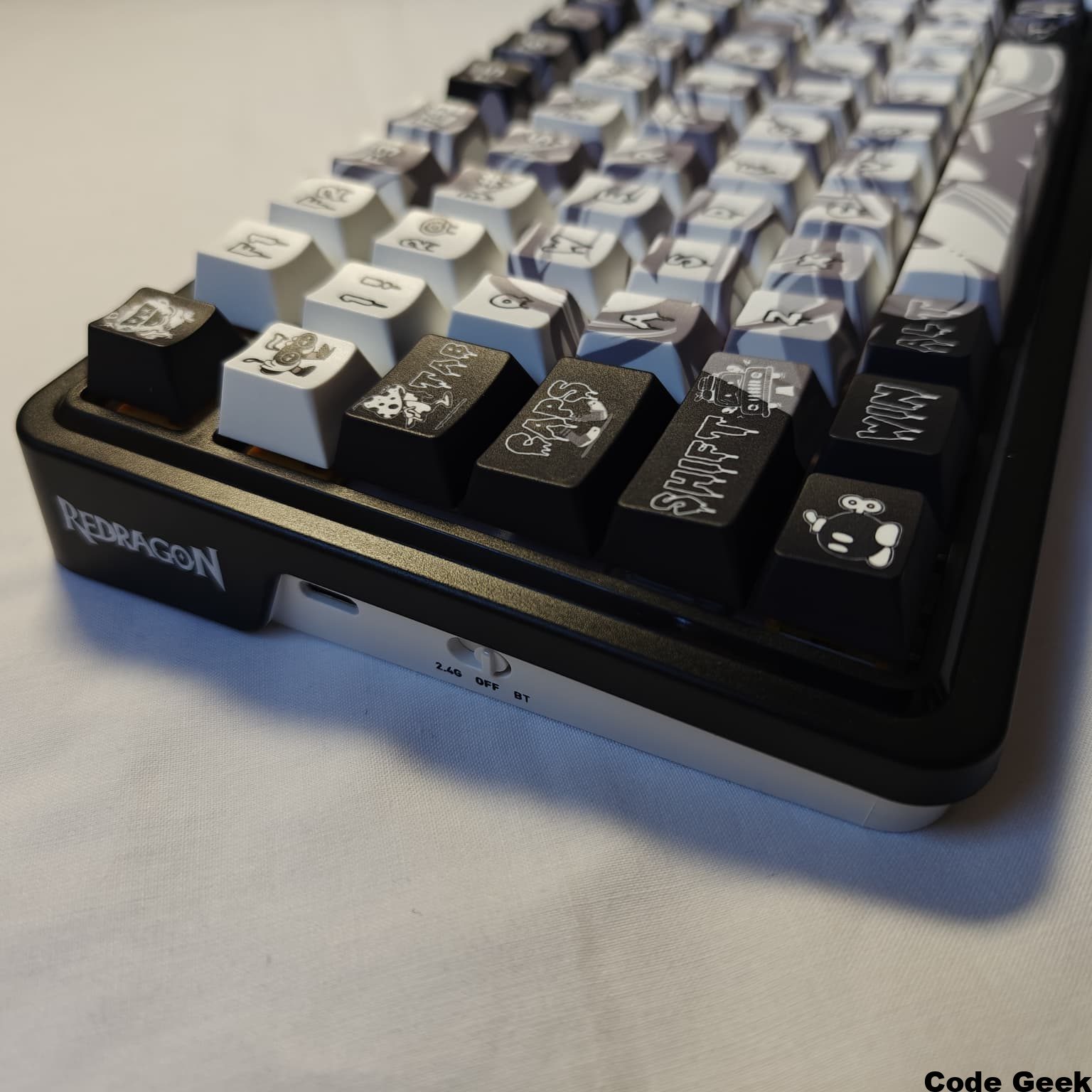 Redragon ha optado por el formato compacto del 95% (95 teclas), una decisión que merece especial atención. Este layout elimina la sección del teclado numérico tradicional, logrando un ahorro de espacio considerable en el escritorio, pero sin sacrificar teclas esenciales. Las funciones de las teclas numéricas se integran de manera inteligente en un bloque secundario accesible mediante una tecla dedicada (Num Lock), preservando así la funcionalidad completa para aquellas tareas que la requieren. Es el equilibrio perfecto para quienes anhelan un escritorio más despejado pero no están dispuestos a renunciar a la practicidad.