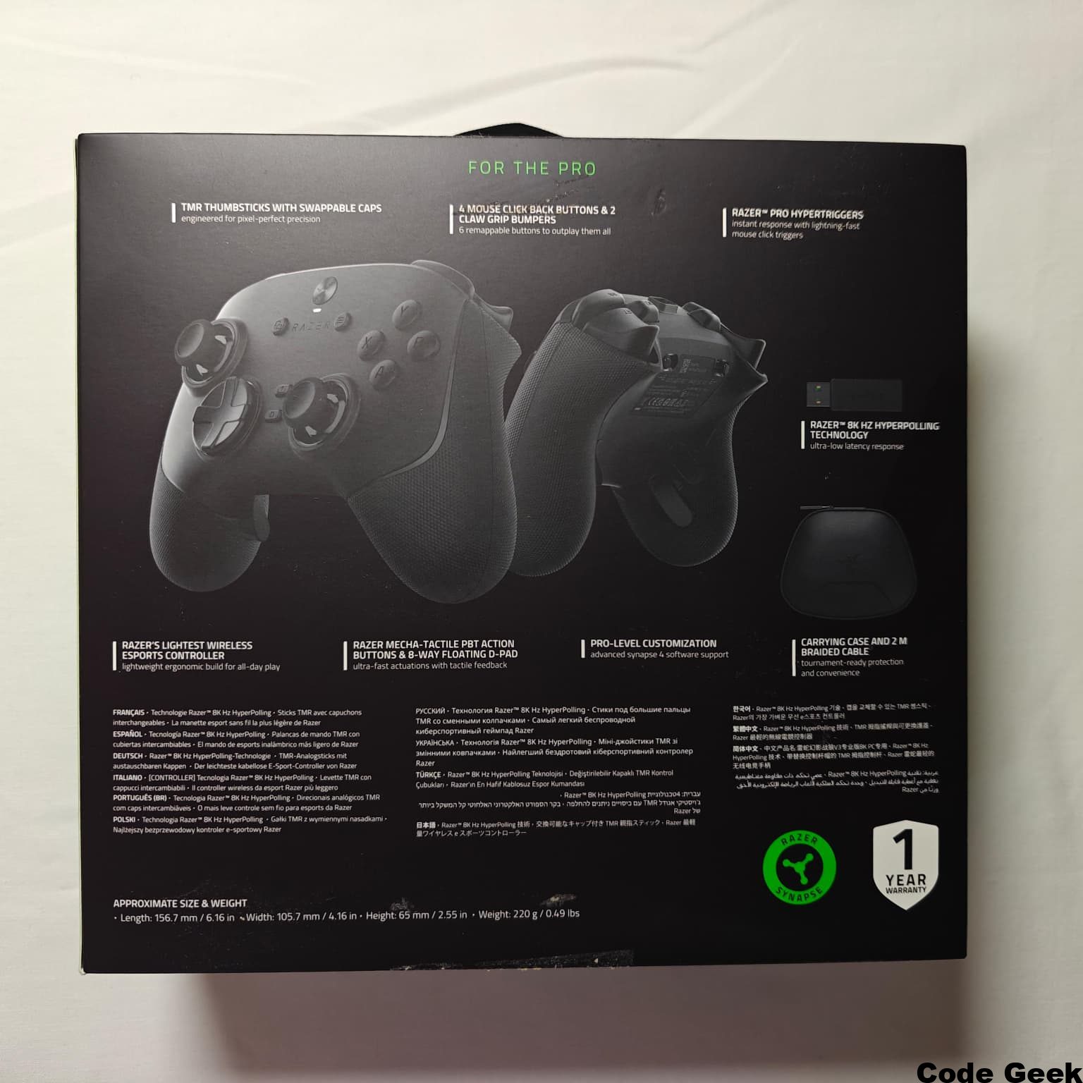 Adicionalmente, encontramos dos botones extra en la parte superior, junto a los gatillos (bumpers estilo «garra»), que permiten acciones rápidas sin levantar los dedos de los joysticks. Esta disposición permite a los jugadores realizar movimientos complejos —como saltar, agacharse, recargar y cambiar de arma— sin perder nunca el control de la cámara. Todo esto se gestiona a través de la aplicación Razer Controller (disponible en Xbox y PC), un software intuitivo que permite remapear botones, ajustar la curva de sensibilidad de los sticks y personalizar la intensidad de la vibración con facilidad.
