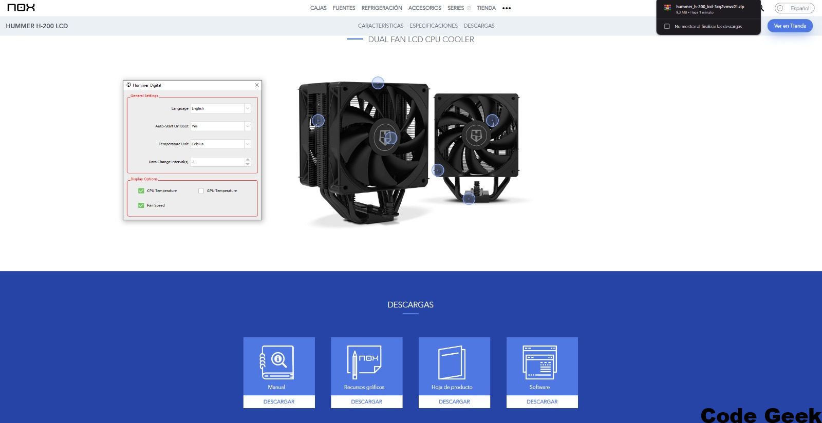 La personalización en el mundo del PC gaming ha alcanzado cotas que hace apenas unos años nos parecían exclusivas de la ciencia ficción. Ya no nos conformamos únicamente con tener un ordenador que ofrezca unas tasas de fotogramas por segundo vertiginosas o unos tiempos de renderizado ínfimos; ahora buscamos que el corazón de nuestra máquina sea una extensión de nuestra personalidad, un escaparate tecnológico que luzca espectacular a través del cristal templado de nuestro chasis. En este contexto de máxima exigencia estética y funcional, irrumpe con una fuerza arrolladora el Nox Hummer H-200 LCD Dual Fan CPU Cooler. Este componente no es un simple disipador por aire, sino una verdadera declaración de intenciones por parte del fabricante, fusionando una capacidad de refrigeración de grado entusiasta con una pantalla digital integrada que transforma por completo la experiencia de monitorización y personalización de nuestro equipo informático. A lo largo de este exhaustivo análisis en Code Geek, vamos a sumergirnos en las entrañas de este portento térmico para descubrir cómo la inclusión de un panel LCD redefine las reglas del juego en la refrigeración por aire tradicional.